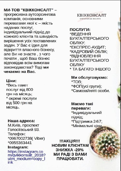Бухгалтерские услуги от компании «КВИККОНСАЛТ» – это возможность получения надежного помощника и партнера для предпринимателей.